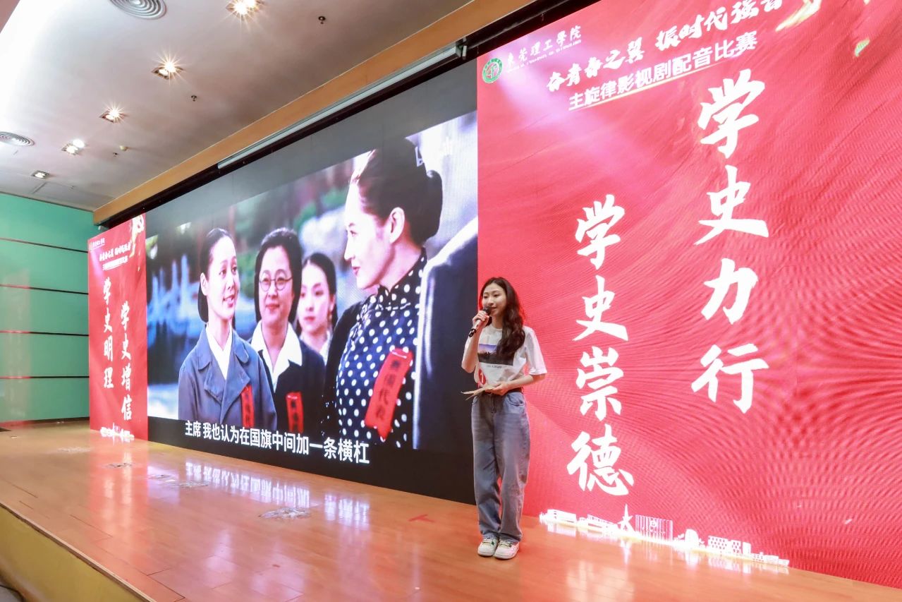 每一部主旋律影视剧,都是一堂生动的党史教育课,从《建国大业》妇女代表的热情探讨,到《觉醒年代》李大钊的慷慨发言,再到《大江大河》中宋运辉对国家、社会发展的自白剖析,莞工学子对多个主旋律影视剧作品片段进行配音演绎,用青春之声、燃烧之情展示了革命先辈的精神气概,引发了现场观众的强烈共鸣。