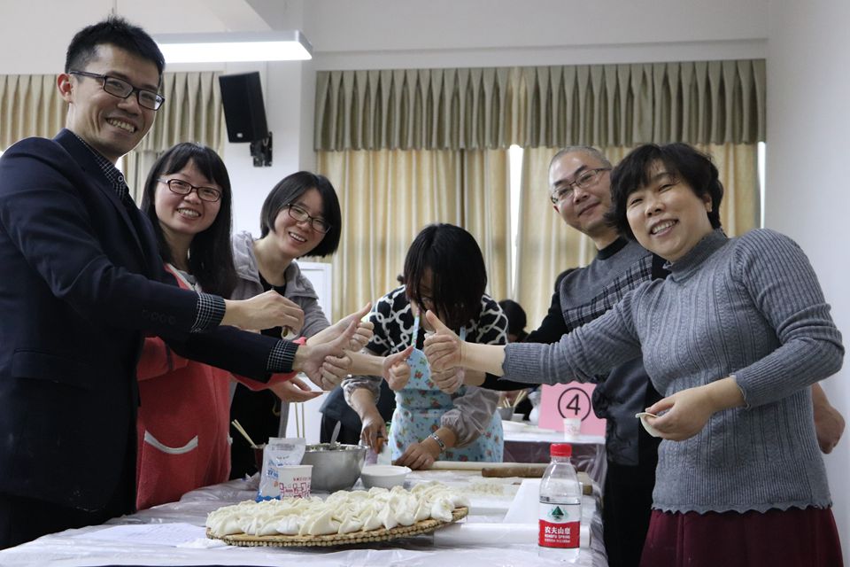 活动现场,老师们纷纷展示手艺,对包饺子、煮饺子等工作进行分组合作。此外,许多老师还带来了自己制作的各色美食。在品尝饺子的同时,各位老师闲话家常,现场氛围温馨。