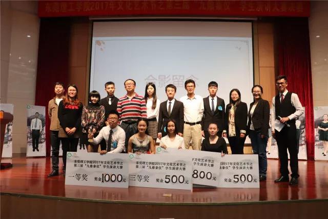 12月3日晚,东莞理工学院2017年文化艺术节之第三届“九鼎秦仪”学生演讲大赛决赛在松山湖校区学术会议中心报告厅举行。文学与传媒学院党总支书记靖辉、教育学院(师范学院)党总支书记杨万江老师、学生处副处长张敏、经济与管理学院党总支副书记劳丹、文学与传媒学院党总支副书记阎江等出席。