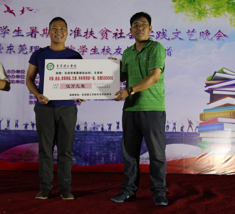 有一种温暖,叫精准扶贫;有一种责任,叫大学生在行动,有一种意识,叫做大学生社团的社会担当。进入暑期,我校学生校友协会韶关黄圃镇精准扶贫志愿服务活动顺利开展。7月13日至14日,在学校发展与联络办公室主任崔学海的带领下,学生校友协会到黄圃镇应山村委会、斗湾村委会开展了精准扶贫志愿服务活动,并在“广东省大学生暑期精准扶贫社会实践文艺晚会”上捐助价值5万元的物资,以实际行动助力村委会的建设和发展。