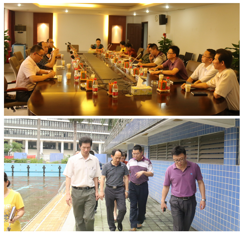 会后,与会人员到游泳馆实地查看,确保游泳馆能在6月份投入使用。