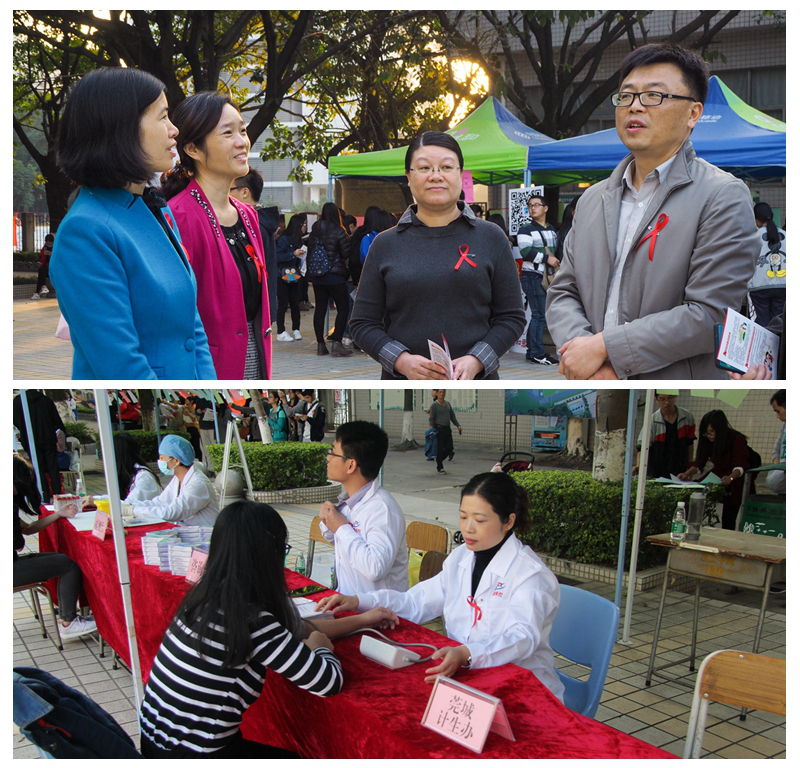 12月1日是第29个“世界艾滋病日”。当日下午,由东莞市莞城区计生办、东莞市莞城疾病预防控制中心、我校莞城校区学工办主办,莞和园社区协办的“青春红丝带进校园,预防艾滋青春自负”主题宣传活动在莞城校区进行。莞城校区党总支书记陈伟、副书记丘永辉,莞城区党委委员叶小敏,莞城计生办主任何淑娴等出席活动。