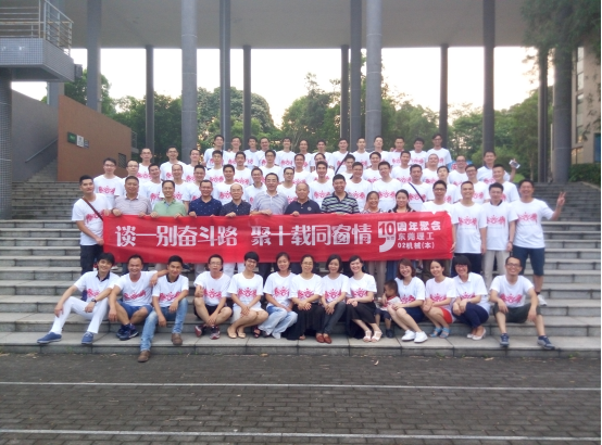 据筹备组罗伟平校友介绍,毕业后,同学们在祖国大地各自发展,甚少聚会,此番聚会,是同学们所期待的,因此,活动很快得到同学们的响应。岁月在老去,但是同学们的心还是紧紧凝聚在一起,为了让大家重温校园生活,筹备组专门为每个同学准备了一件同窗T恤,并在机电楼召开一次主题班会。会上,校友纷纷分享自己的工作经历以及生活趣事。罗伟平说,回想求学时,松山湖校区刚刚启用,环境十分艰苦,周围荒无人烟。看到今日的母校,有高楼更有大师,去年成为建设高水平理工科大学,作为一名莞工人,感到十分骄傲。当年的老师受邀参加了聚会。