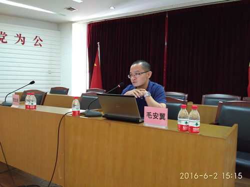思政部教师毛安翼博士给与会的四十多位党员讲党课,党课题目是《习近平总书记全面从严治党思想》,着重阐释了习近平总书记治党思想和制度的创新。他从理论和党的发展历程说明了遵守党章党规对于我党成长与发展、社会主义建设的极端重要性,说明了党员遵守党章党规的必要性,他结合东莞典型案例,以自问自答的形式,生动地介绍了干部和普通党员如何才能遵守好党章党规,并介绍了纪律巡视的新制度新做法和终身问责制。他号召各位党员要牢记党章党规,做一名合格的共产党员。