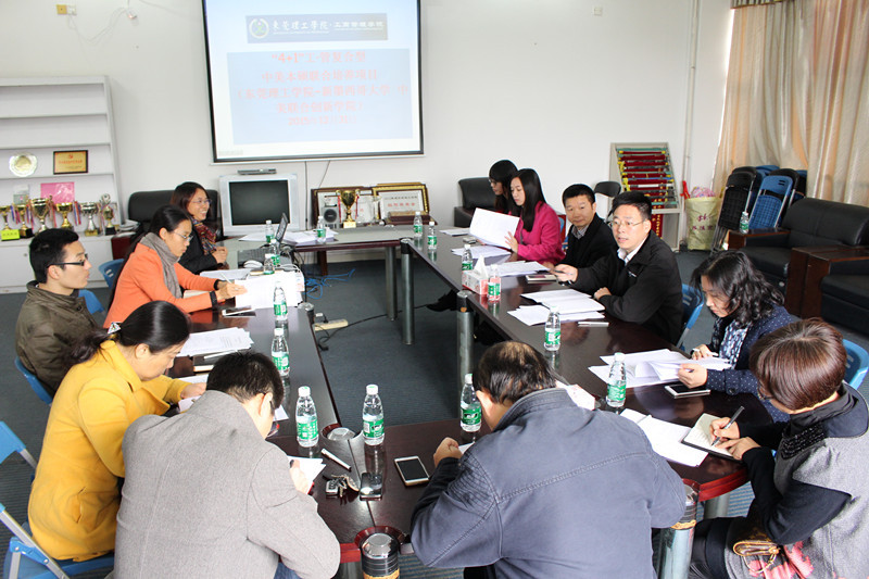 2015年12月31日,工商管理学院举办“4+1”工∙管复合型中外本硕联合培养项目的座谈研讨会,东莞理工学院国际交流处胡钦华处长、教务处邹琼副处长、教师发展中心主任、人事处李环副处长等参加了此次座谈会,工商管理学院李银满院长、各专业负责人和部分教师参加了此次座谈研讨会。