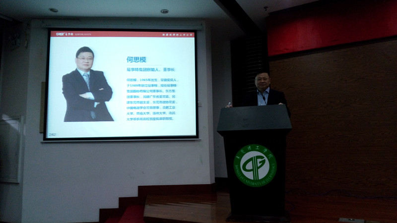 2015年12月26日,工商管理学院创新创业金融服务中心与亚洲商学院在我校学术会议中心联合举办主题为“创业之路:中小企业如何发展壮大”的讲座。广东易事特集团股份有限公司董事长何思模分享了公司从小到大发展的创业历程和经营心得,深受与会者欢迎。校内外200多人参加了讲座。