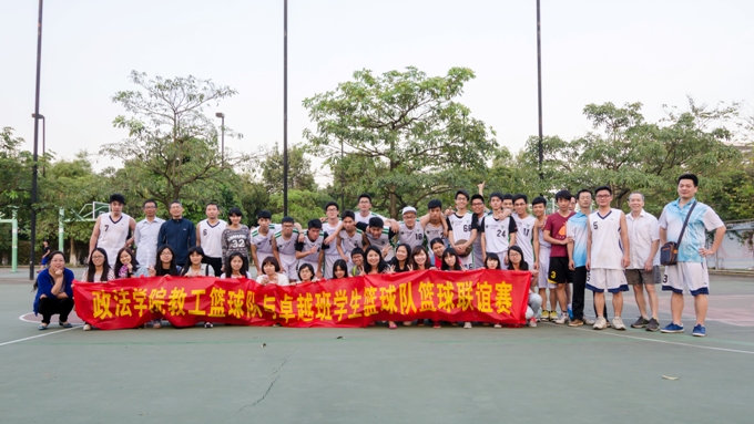 4月15日,政法学院教工篮球队与法律卓越班学生篮球队进行了一场篮球友谊赛。