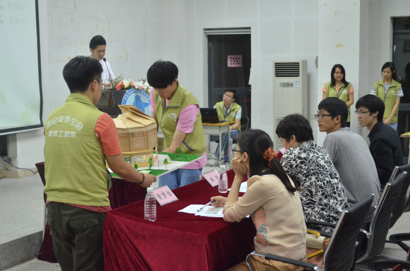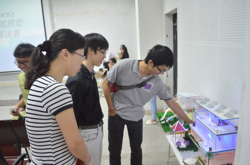 4月17日,由校团委主办、建筑工程系承办的东莞理工学院第九届学术科技节之第四届建筑模型设计比赛(决赛)在学生活动中心举行。本次大赛以“我心目中的校园建筑”为主题,收到全校91支队伍提交的参赛作品,采用网络投票和评委评分筛选,评选出10份作品入围决赛。