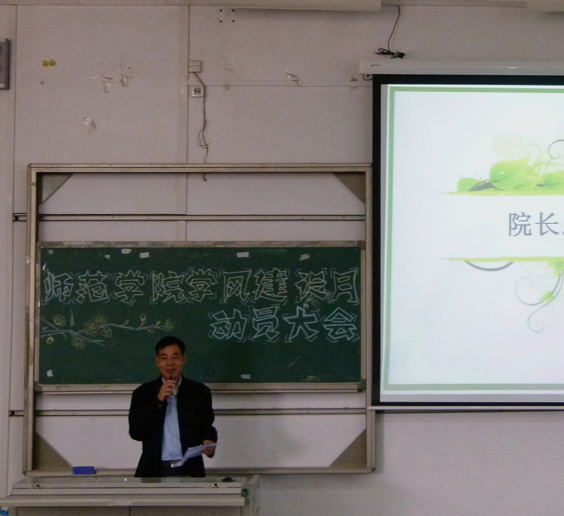 4月3日,师范学院举行2014年“学风建设月”动员会。师范学院相关负责人,教师代表及全体学生参加会议。