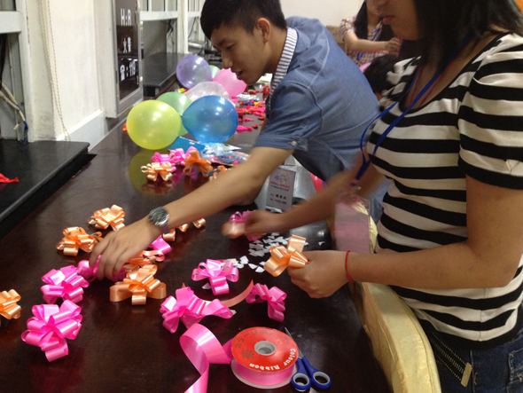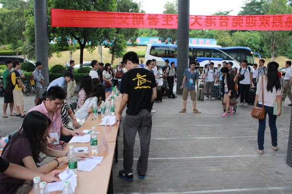 在接待现场,校港澳台办、学生处的负责人和老师,以及我校参加本次交流营的同学主动热情迎接,当好东道主,并为台港同胞搬提行李,协助收集证件、发放物品和帮助入住。为给台港学友们创造热情温馨的氛围,在校港澳台办和学生处老师的指导下,我校参加交流营的同学们还自发对第二天开营仪式和联欢会的现场进行了精心布置,做好一切准备工作。