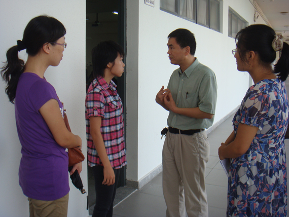 新学期开学第一天,由建筑工程系党总支书记秦怀泉带队,学生工作办公室,系办老师一行前往课室巡查学生上课情况,并探望该系上学期刚做完脑瘤手术的徐玉梅同学。徐玉梅目前身体状况良好,但视力和听力还没有完全恢复,但她积极乐观面对学业,秦怀泉对她表达了关心和鼓励。