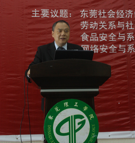 参加本次会议的有学会理事长、广东工业大学副校长张光宇教授等四十多位省内管理学界的专家,会议主题是“社会管理与系统工程”,来自广东省生产许可证审查服务中心、华南理工大学工商管理学院、广东工业大学管理学院、东莞理工学院工商管理学院的四位专家分别做了主题报告。