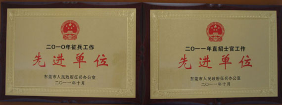 另悉,在10月21日召开的2011年全市征兵工作会议上,我校被东莞军分区评为“2010年征兵工作先进单位”和“2011年直招士官工作先进单位”。这是我校连续七年被评为“征兵工作先进单位”,连续两年被评为“直招士官工作先进单位”。