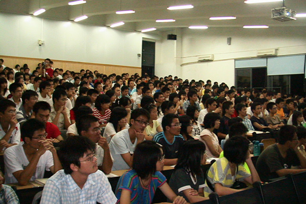 10月21日晚,计算机学院数学教研室的熊辉博士在6E207作了“代数与中国古代经典”的讲座。讲座受到广大同学们追捧,能容纳300多人的大教室早早就座无虚席,甚至连过道也被挤满,不少同学站着听完讲座。 熊辉博士在讲座中把数学与中国古代经典有机地结合在一起,演讲精彩而幽默,思想深邃而富于哲理,为师生们献上了一场视听盛宴。 据了解,如此火爆的讲座场面,对熊辉博士来说早已不是第一次。而且,听讲座的人当中,有部分还是专程从广州等地赶来的前几届毕业生。