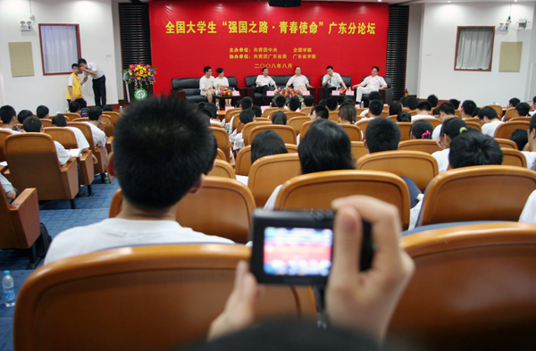 8月8日,由共青团中央、全国学联主办的全国大学生“强国之路,青春使命”广东分论坛在我院举行。“中国大学生骨干培养学校”第二期一百多名来自北京大学、清华大学等全国198所重点高校的学生干部参加了论坛。