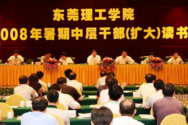 2008年8月29日至31日,东莞理工学院2008年暑期中层干部(扩大)读书班开班。校领导、教务长、学校中层干部、教学单位在编正高人员及教师代表共119人参加了学习,会议围绕“继续解放思想,破解发展难题,搭建新的平台,实施质量工程,实现新的发展”的主题进行了深入研讨。