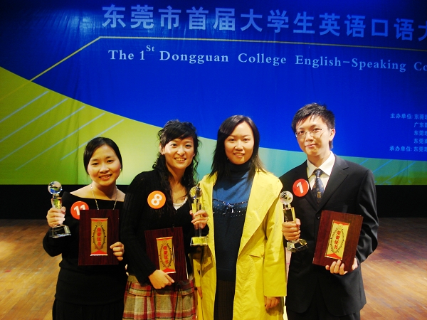 12月9日,我院3名同学在2007年首届东莞市大学生英语口语大赛中力拔头筹,陈志凌和马思远同学夺得特等奖,陈惠玲获得一等奖。