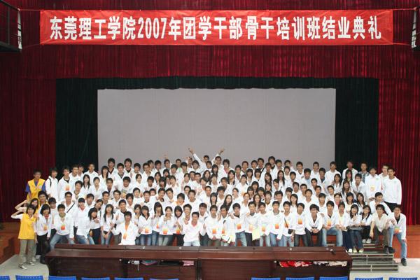 12月16日,由院党委学生工作部、院团委联合院级学生组织举办的东莞理工学院2007年团学干部骨干培训班在学生活动中心落下帷幕,省学联执行主席章奕贵同学以及院党委学生工作部、院团委负责人等参加了结业典礼,并为学员颁发了结业证书。