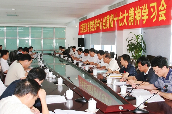 10月25日,我院党委中心组举行贯彻十七大精神学习会。学院党委中心组成员和部分党外人士参加了学习。学习会由学院党委副书记、院长杨晓西主持。与会人员以十七大精神为指导,结合学院的办学指导思想和办学特色进行热烈发言。