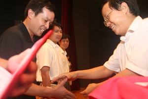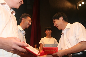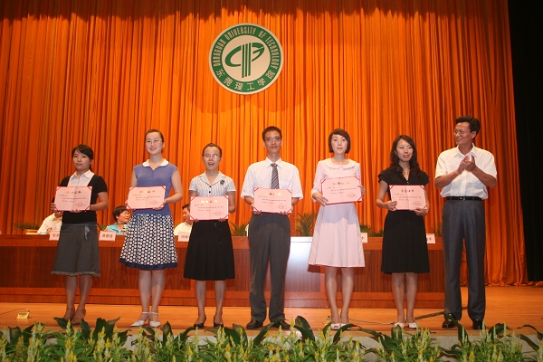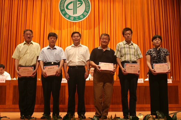 秋菊溢彩,丹桂飘香。9月12日下午,学院领导周致纳、杨晓西、王江水、黄碧莲、安少华、邹晓平、戴炳源及全院教职工共聚大礼堂隆重庆祝我国第23个教师节。院长杨晓西教授主持了大会。大会对获得学院“教学名师奖”、“师德标兵”称号、2006—2007年度教学质量优秀奖及2006—2007学年度教书(管理、服务)育人的先进个人进行了表彰,学院领导分别为他们颁发了荣誉证书和奖品、奖金。其中,“教学名师奖”和“师德标兵”是我院建院以来首次组织的评选。“教学名师奖”一次性奖励人民币10000元,每两年学院组织一次评选,每次获奖名额不超过5人;“师德标兵”是经基层民主推荐,全院师生投票等相关程序产生。