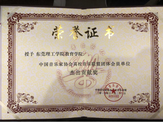 会议向30所高校颁发“中国音协高校音乐联盟十周年杰出贡献高校”。其中,东莞理工学院教育学院(师范学院)荣获“中国音乐家协会高校音乐联盟团体会员单位”杰出贡献奖。